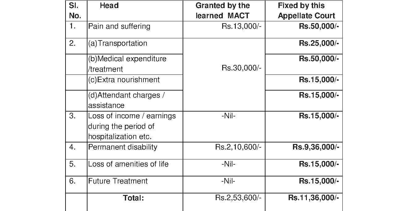 3. The learned MACT partly allowed the claim and awarded a total compensation of Rs.2,53,600/- with interest at the rate of 6% per annum, while dismissing the claim against respondent Nos.3 and 4.