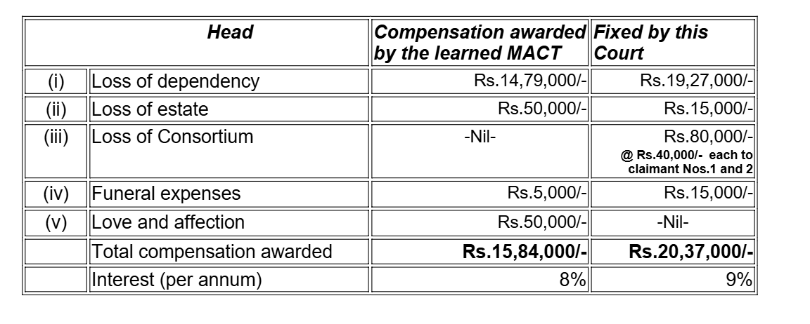 The court adjusted the compensation for fatal accident claims based on the deceased's income and future prospects, emphasizing a holistic approach to negligence and entitlement under the Motor Vehicl....