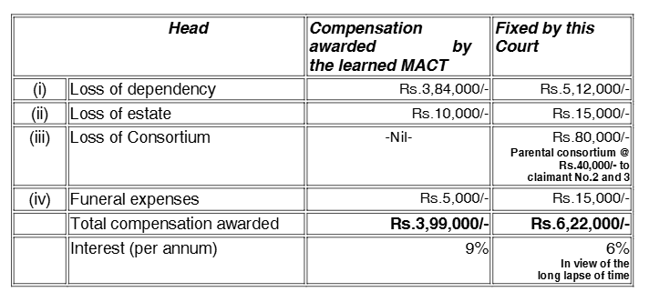 The court adjusted the compensation for fatal accident claims based on the deceased's income and future prospects, emphasizing a holistic approach to negligence and entitlement under the Motor Vehicl....