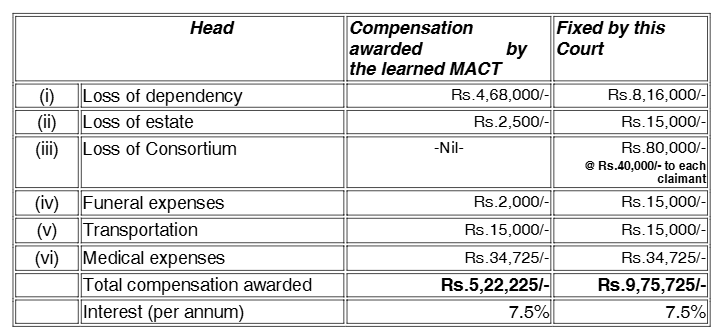 The court adjusted the compensation for fatal accident claims based on the deceased's income and future prospects, emphasizing a holistic approach to negligence and entitlement under the Motor Vehicl....