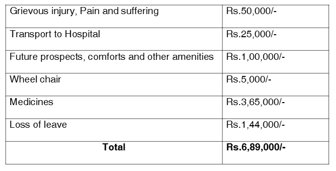 4. One Ch. Udaya Bhaskar (for short “the Claimant”) filed M.V.O.P.No.330 of 2007 claiming a compensation of Rs.12,00,000/- for the injuries suffered by him in a motor vehicle accident and the learned MACT awarded a compensation of Rs.6,89,000/- with interest at the rate of 7.5% per annum from the date of petition till the date of realization with proportionate costs.