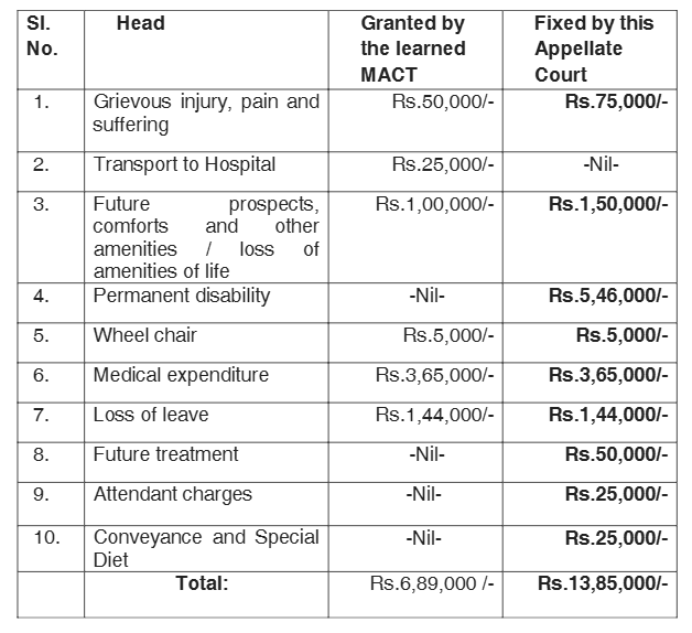 1. Questioning the adequacy of compensation granted in M.V.O.P.No.330 of 2007 on the file of Motor Accidents Claims Tribunal-cum-Family Court-cum- Additional District and Sessions Court, Vizianagaram (for short “the learned MACT”) the claimant before the learned MACT filed appeal in M.A.C.M.A.No.1180 of 2011.