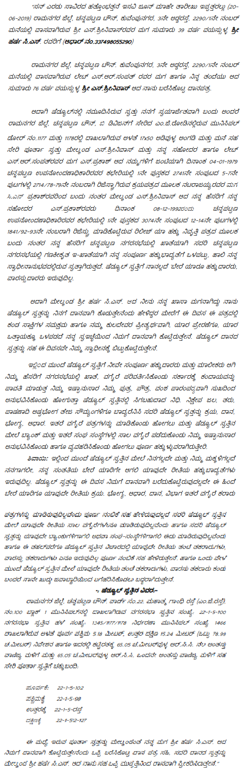 The 3rd respondent is the father of respondents 4 and 5. The 3rd respondent owned certain property; initially executes a gift deed in favour of his wife in the year 2000. The wife of the 3rd respondent who was the donee dies in the year 2015. After the death of his wife, the 3rd respondent who was the donor, gifts the property again to the 4th respondent, his son by execution of a gift deed dated 20-06-2019. After the said gift deed, the name of the 4th respondent is entered in all revenue records depicting him to be the owner of the said property. On the strength of him becoming the absolute owner of the property, the 4th respondent sells the property in favour of the present petitioner on 19-12-2019 on certain consideration. Two years after the said sale, the 3rd respondent, earlier donor knock