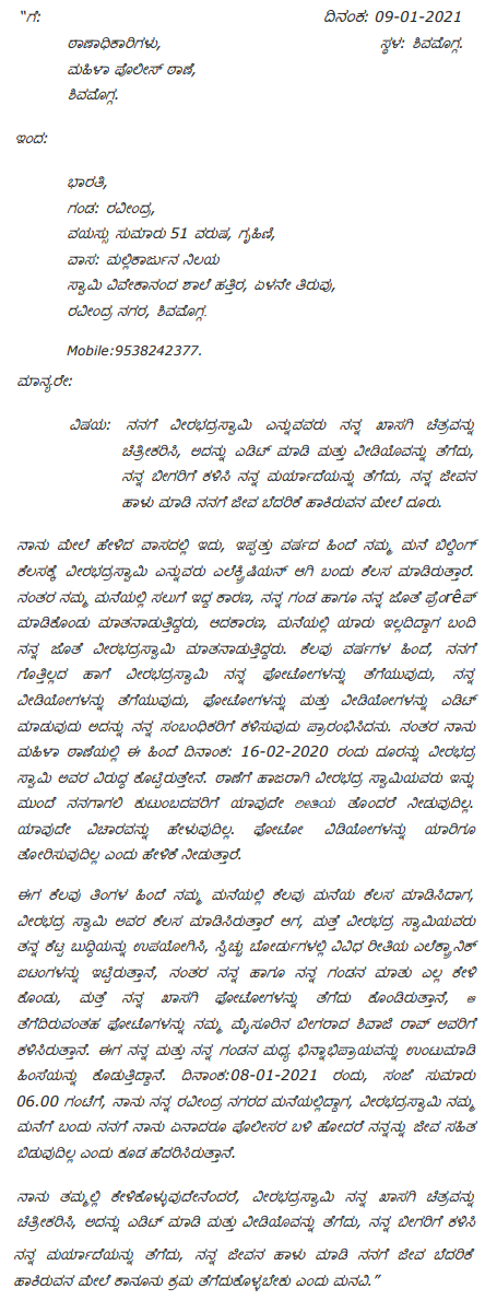 State Of Karnataka, Represented By Mahilla Police Station, Shivamogga, Rep. By Its State Public Prosecutor, DR. Ambedkar Veedhi – Respondent