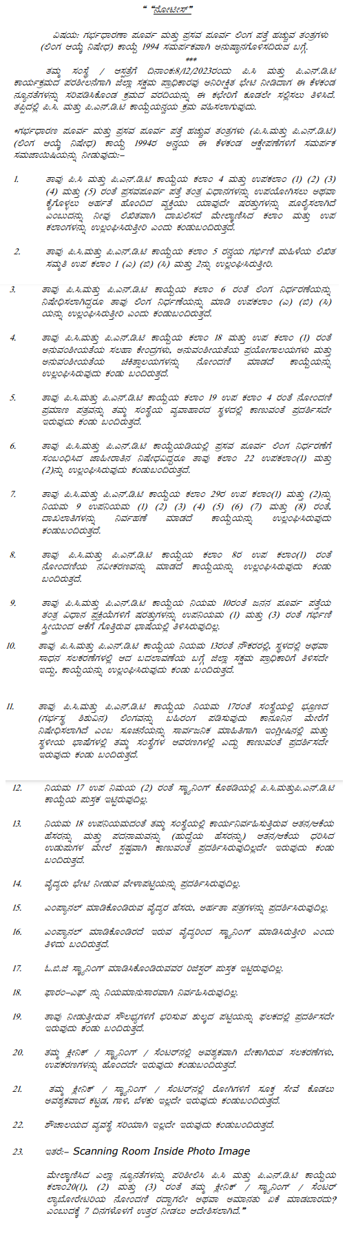 The petitioners, both doctors, are before this Court calling in question proceedings in C.C.No.1938 of 2024 pending before the Metropolitan Magistrate, Traffic Court-I, Mayo Hall, Bangalore, pursuant to a complaint initiated by the 1st respondent under Section 200 of the Cr.P.C., alleging offences under Sections 20(1), (2), (3) and 23(1) and (2) of the Pre-conception and Pre-natal Diagnostic Techniques (Prohibition of Sex Selection) Act, 1994 (‘the Act’ for short).