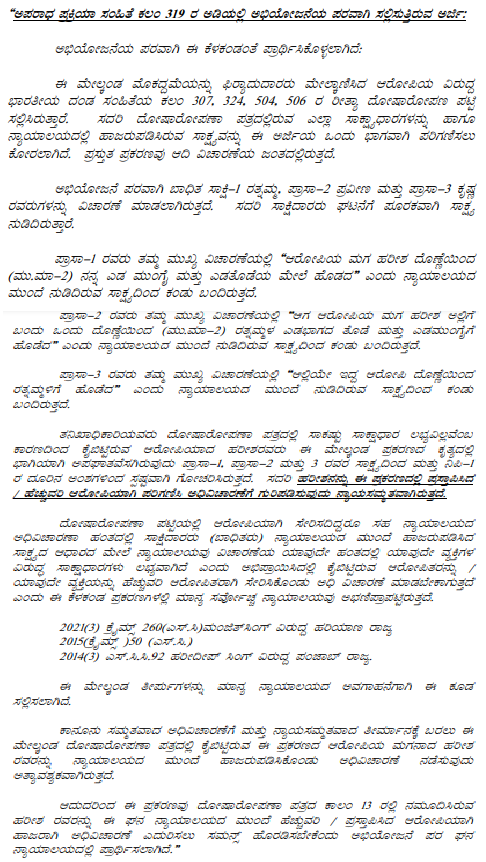 These petitions call in question a solitary order. Criminal Petition No.7280 of 2022 is preferred by the respondent/State and Criminal Petition No.274 of 2022 is preferred by the complainant. They call in question an order dated 17-12-2021, passed by the 4th Additional District and Sessions Judge, Hassan District at Channarayapatna, in S.C.No.81 of 2015 by which, the concerned Court rejects the application of the prosecution to bring in the 3rd respondent in Criminal Petition No.274 of 2022 as an accused for conduct of trial with respect to offences punishable under Sections 307, 324, 504 and 506 of the IPC.