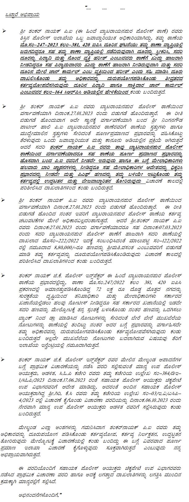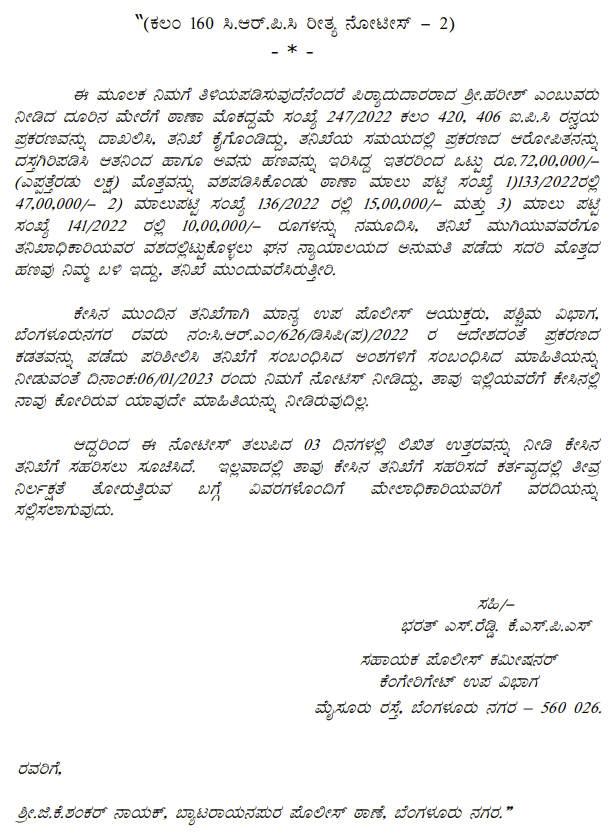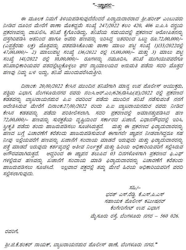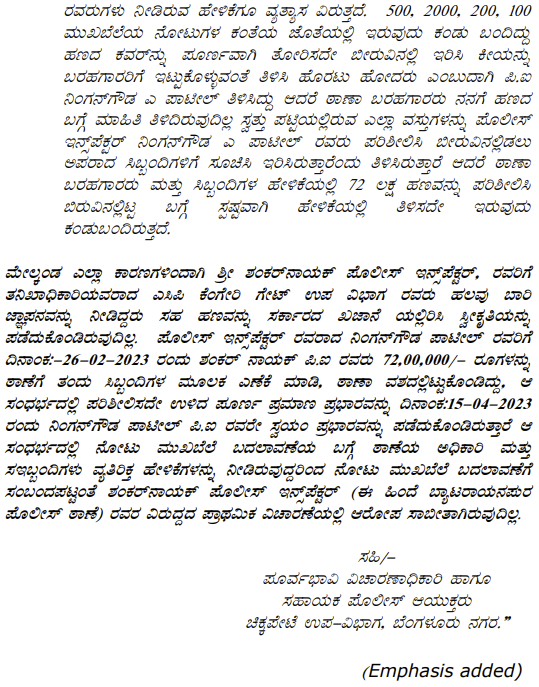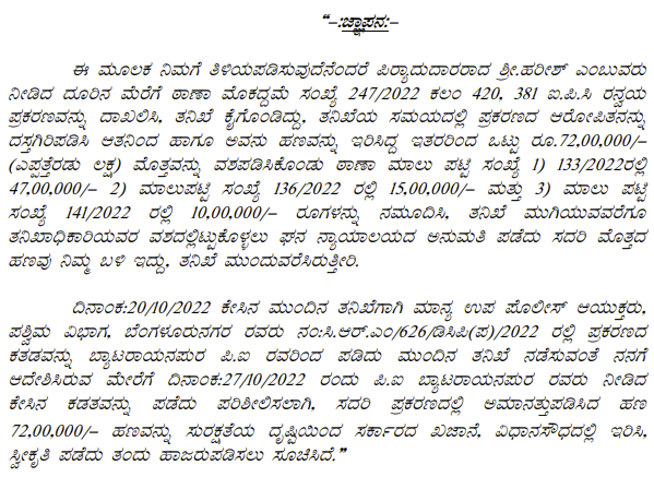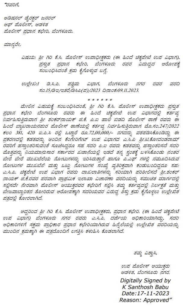 1. The petitioner is before this Court calling in question crime in Crime No. 454 of 2023 registered for offences punishable under Sections 409, 465, 201, 110 of the IPC and Section 7 of the Prevention of Corruption Act, 1988 (‘the Act’ for short) pending before the IV Additional Chief Metropolitan Magistrate, Bengaluru City.