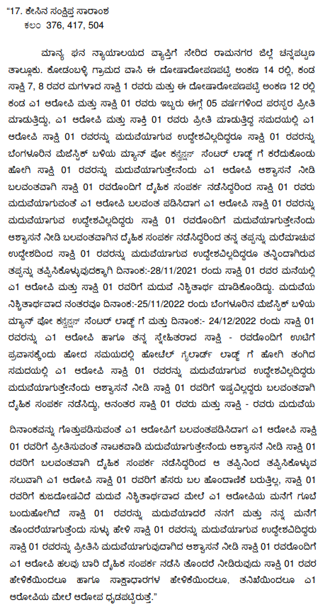 1. The petitioners are before this Court calling in question the crime registered in Crime No. 140 of 2023 and charge sheet bearing No. 13 of 2024 for offences punishable under Sections 376, 417 and 504 of the IPC.