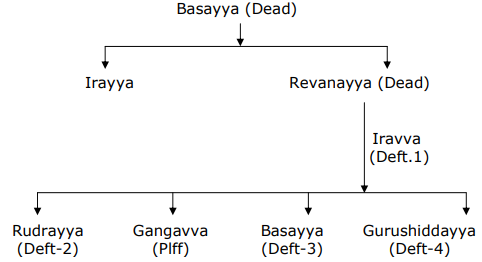 3. One Basayya was the propositus. He had two sons, Irayya and Revanayya. Revanayya married Iravva and from the marriage the couple had three sons namely Rudrayya, Basayya and Gurushiddayya and one daughter Gangavva.