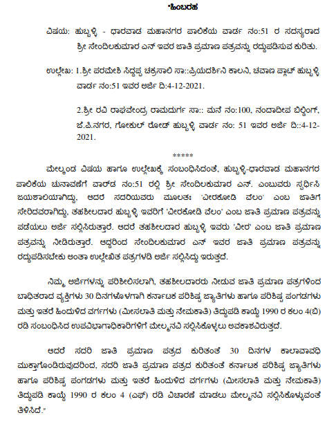The petitioner claims to be belonging to ‘Veerkudi Vellam’ caste which is depicted in Other Backward Class-A Category. On the said claim, the petitioner files an application before the jurisdictional Tahsildar for grant of caste certificate depicting him as belonging to the said caste. The petitioner is said to have produced all the documents in support of his claim for issuance of caste certificate. It is the averment in the petition, that the Tahsildar after verifying all the documents and following the procedu