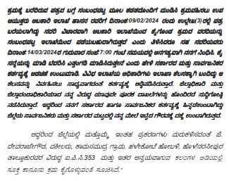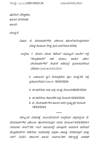3. On perusal of the material on record will indicate that on 02.06.2022, suo-moto complaint was registered at the instance of respondent No.2 at 9.00 a.m., inter alia alleging that on 31.05.2022 at about 1:30 p.m., the petitioner is said to have committed offence punishable under Section 353 of IPC. In pursuance of the said complaint which was registered in an FIR in Crime No.98/2022, the respondent - Police submitted a charge sheet, which is currently pending in C.C.No.7912/2024 for offences punishable under Sections 353 , 419 and 504 of IPC.