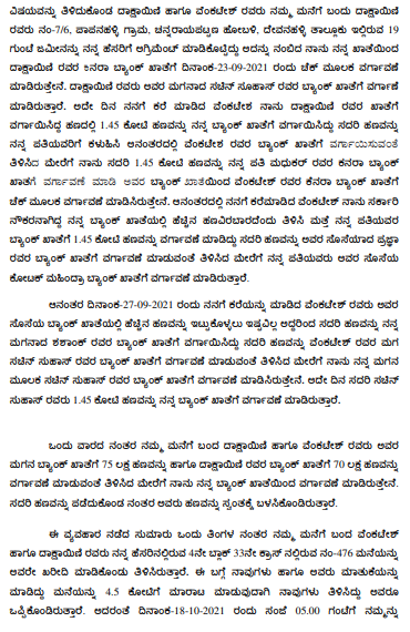 The petitioner in Crl.P.3087 of 2022 is said to be an employee of this Court. He and his family get acquainted to the family of the complainant. It is the case of the complainant that on certain assurances of the accused and their family, several crores of money transaction happens between the two, wherein the accused is said to have borrowed Rs.1.5 crores from the complainant and also got a sale deed executed in their favour in respect of the property of the complainant situate at Jayanagar, which according to the complaint is about Rs.4.5 crores. The further allegation is that the sale deed registered in fa