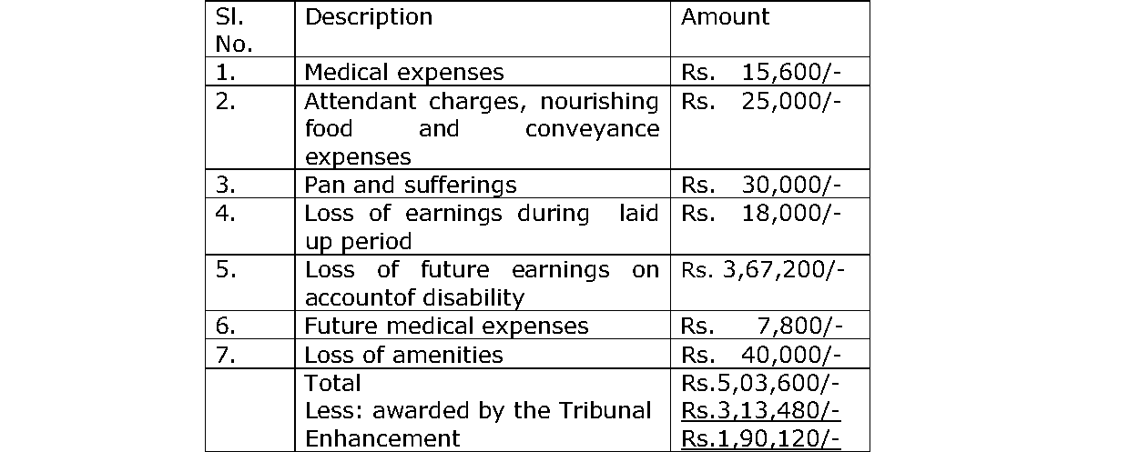 2. The petitioner in MVC No.15/2011 is before this Court being aggrieved by the judgment and award of the learned Additional District and Sessions Judge and MACT, Chamarajanagara, sitting at Kollegala dated 21.06.2016.