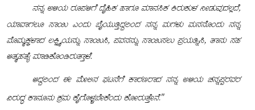 3. The brief facts leading to this appeal are that, Police Inspector of Basaveswaranagar Police Station, Bangalore submitted charge sheet against the accused for the offence punishable under Sections 498A and 306 of the Indian Penal Code, 1860 ('the IPC ' for short). It is alleged by the prosecution that, the marriage of the accused was solemnized with Smt. Roopa on 21st June, 2006 as per the customs prevailed in their community and after their marriage, the accused and deceased started residing in a rented house at Laggere, Bangalore. Out of wedlock, they were blessed with two children. The accused was addicted to bad vices and also had illicit relationship with other woman, and failed to take care of the deceased and her children by not bringing the household articles and was also not paying the school fees of the children. The accused used to
