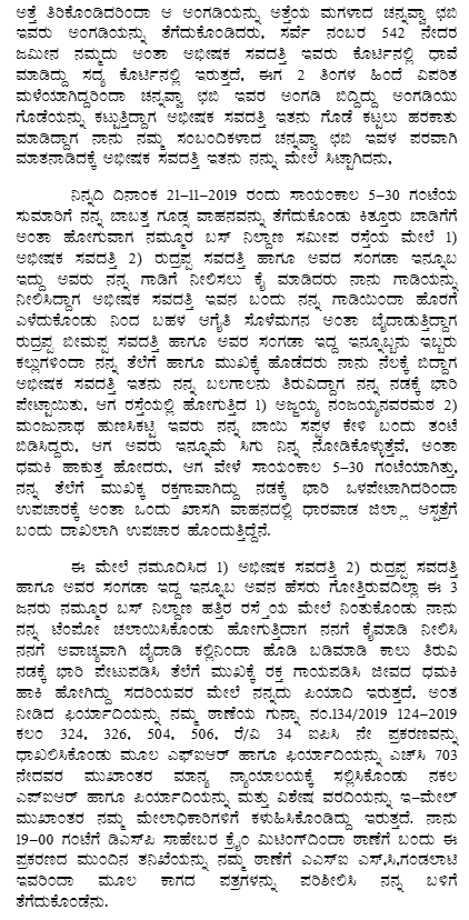 “1. The petitioner who is accused No.1 calls in question registration of crime in Crime No.134 of 2019 for offences punishable under Sections 324, 326, 504, 506 r/w 34 of the IPC and pending before the I Additional Civil Judge (Junior Division) and JMFC, Dharwad.