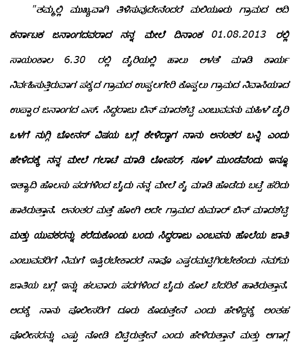 3. The brief facts leading to this appeal are that the Dy.S.P, Malavalli Sub-Division, Malavalli submitted the charge-sheet against the accused for the offences punishable under Section 323, 354, 504, 506 read with 34 of Indian Penal Code and Section 3(1)(x) and 3(1)(xi) of SC and ST (Prevention of Atrocities) Act, 1989.