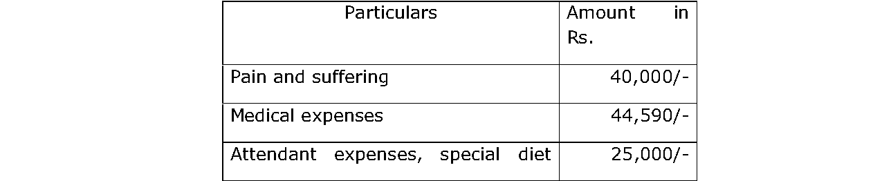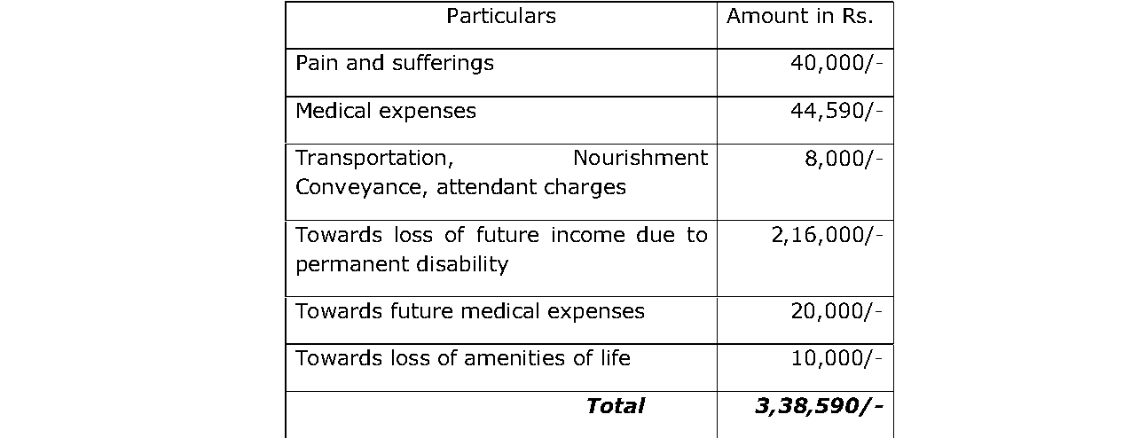4. The brief facts of the case are that, on 07.04.2019, at about 5.30 p.m., the petitioner was traveling in a car bearing registration No.KA-53/MA-9533 and when they reached near Nakkanahalli village, Nandagudi Hobli, Hosakote Taluk, Bangalore Rural District, the driver of the said car drove the same in a rash and negligent manner. At that time, one buffalo suddenly entered the road and as a result, the driver dashed the road side stones. Due to the impact, the petitioner fell down and sustained grievous injuries. He has spent substant