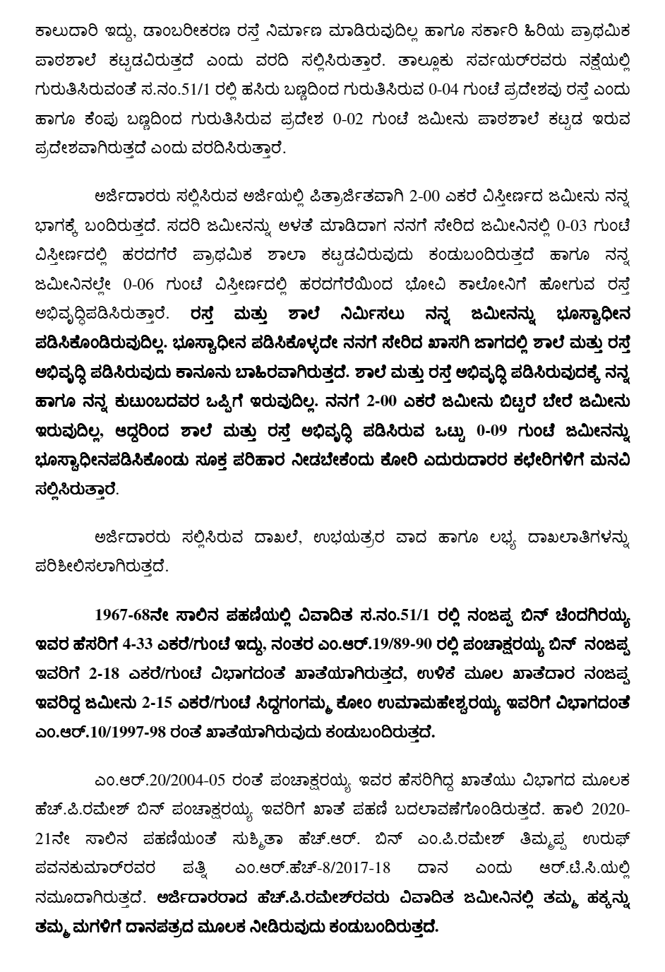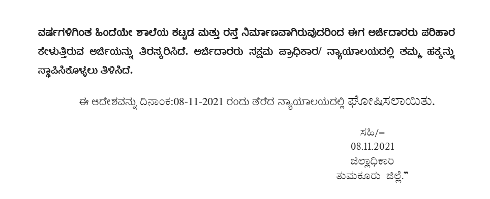 4. Sri Kishan G.S., learned counsel for the petitioners submits that the land of the petitioners admittedly is being utilised by constructing a government school and formation of a road. If the fact is admitted, it cannot be said that the petitioners would not be entitled to any compensation.