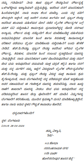 "(i) Quash the FIR in Crime No.107/2024 dated 28.04.2024 vide Annexure-A as against the petitioner herein registered at Holenarasipura Police Station, Hassan District, for offences that are made punishable under Section 354(A), 354(D), 506 and 509 of IPC pending on the file of the XLII Addl. Chief Metropolitan Magistrate, at Bengaluru, in the interest of justice.