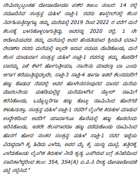 4. The allegations made against the petitioner herein in the complaint is that, the complainant was a distant relative of the petitioner and was working as a maid/cook in his house and at that time, she was subjected to sexual harassment by the petitioner as well as his son.