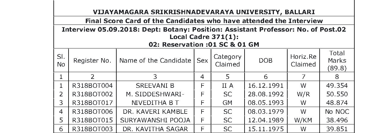 1. The petitioner is before this Court calling in question an Office Order dated 07.09.2018 issued by the respondent No.3 appointing the respondent No.4 as Assistant Professor in the Department of Botany at the respondent Vijayanagar Srikrishna Devaraya University (hereinafter referred to as the ‘University’ for short).