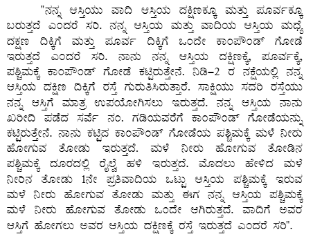 3. It is the case of the plaintiff that he is absolute owner in possession and enjoyment of land measuring 5 cents in Sy.No.216/3 situated at Surathkal Village, Mangaluru, (for brevity "the suit 'A' schedule property") and the same was purchased by plaintiff vide Sale Deed dated 01.08.2005 from Prema S Kullal - defendant No.1. Since there was no approach road to ingress and egress to the 'A' schedule property, defendant No.1, the vendor of plaintiff has specifically reserved 12 feet road towards the southern side of the 'A' schedule property which runs east to west which is clearly mentioned in clause No.8 of the said Sale Deed. However, on the eastern and southern side of the 'A' schedule property, the property of defendant No.1 is situated. Therefore, the aforesaid 12 feet width reserved RRR road is not only grant of way but also an easement of necessity and the plaintiff and his family members are using the