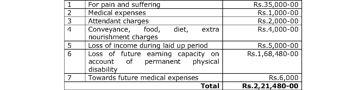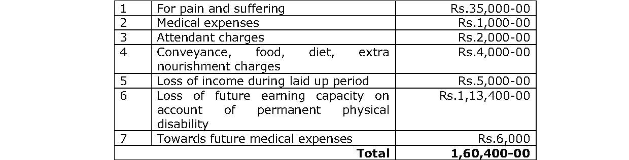 4. The claimant in MVC No.619/2025 has suffered the injuries in the aforesaid accident as per Ex.P.6-wound certificate, which are as follows:-