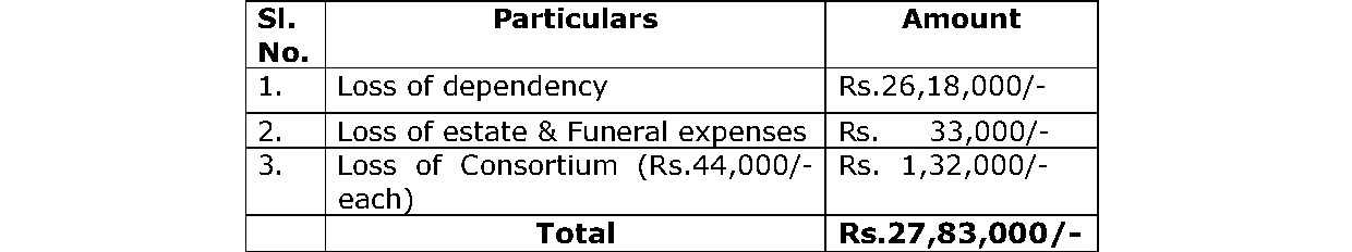 3. The claimant, mother of the deceased Parasappa Pujari, filed a claim petition under Section 166 of the Motor Vehicles Act, 1988 before the Tribunal seeking compensation for the accidental death of one Parasappa Pujari, that took place on 20.03.2020 involving two motorcycles bearing registration No.KA-48/EA-3940 & KA-69/E-4048. It is stated that the deceased was aged about 27 years as on the date of the accident and was doing agricultural work, earning a sum Rs.12,000/- per month.