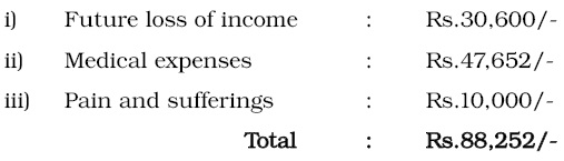 3. The learned Tribunal has granted compensation of Rs.47, 000/- only to the appellant on account of injury sustained by him and the medical expenditure incurred by him. However, there is no bifurcation given by the learned Tribunal under which heads the amount of Rs.40, 000/- out of total compensation has been awarded.