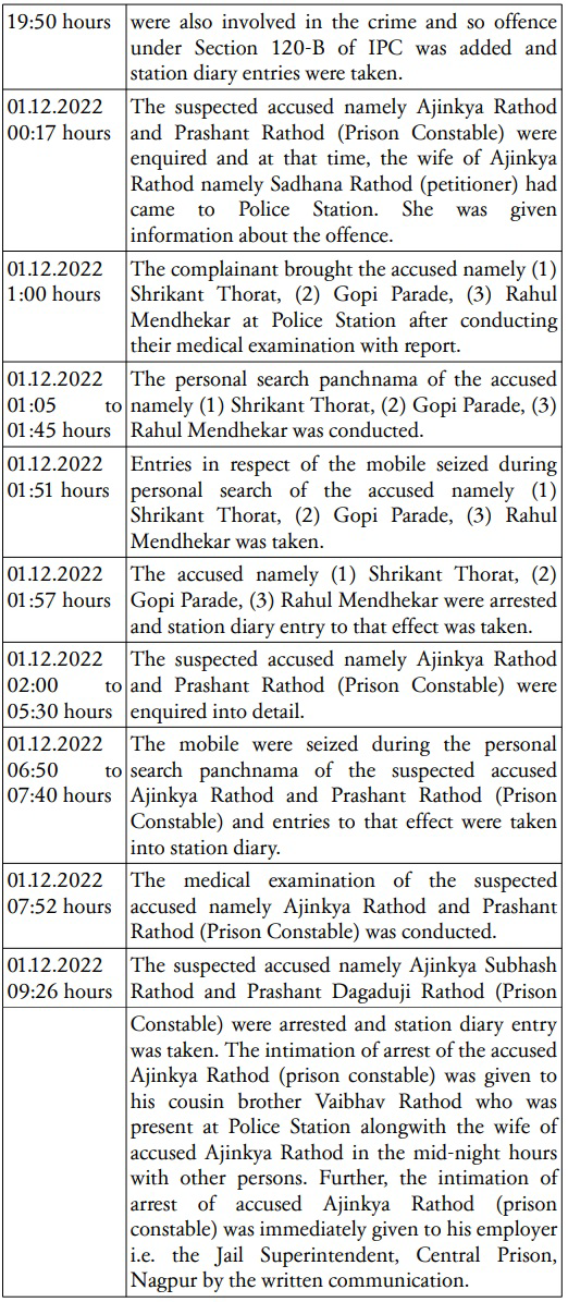 2. In this criminal writ petition, filed under Article 227 of the Constitution of India read with Sec. 482 of the Code of Criminal Procedure, 1973, the petitioner, who is the wife of arrested accused Ajinkya Subhash Rathod, has questioned the correctness of the orders dtd. 1/12/2022 and 5/12/2022 passed by the learned Judicial Magistrate First Class, Nagpur Court No.1 granting police custody remand to the husband of the petitioner and also for quashing and setting aside these two orders as well as the order dtd. 8/12/2022 passed by the learned Judicial Magistrate First Class, Nagpur remanding the husband of the petitioner to the magisterial custody. The petitioner has also prayed for grant of bail. The petitioner has also prayed for quashing the order dtd. 5/12/2022, rejecting the application made by the petitioner under Sec. 97 of the Code of Criminal Procedure, 1973 (for short "Cr.PC).