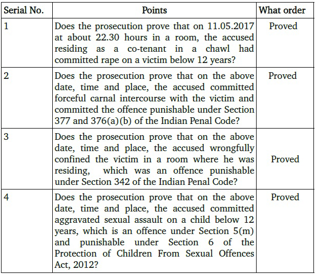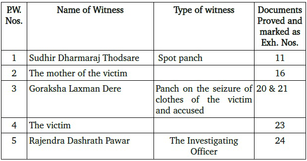 3. The prosecution case in brief was that the victim was residing with her family in a chawl. The accused was also residing in one of the rooms in the same chawl. The victim was six and a half years old at the time of the incident. On 11/5/2017 at about 10.30 pm, the victim and her family had their dinner. Her mother, who was the first informant, was cleaning the utensils in the house. The victim told her that she was getting hot and wanted to sit out in the air. After finishing her work, she gave a call to the victim, but she did not respond. Therefore, she searched for the victim. However, she did not find her. When she was returning home, she noticed that the electric light in the room of the accused was on. Therefore, she peeped inside the room from the window. She found the victim in the said room. Therefore, she went inside the room and brought her out. She also