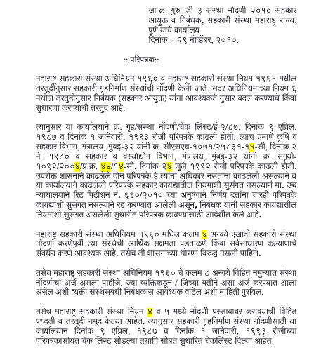 (i) Whether it is lawful for the Registrar to prescribe, by way of a Circular, higher number of persons than the one prescribed in sub-section (1) of Section 6 of the Maharashtra Co-operative Societies Act, 1960 (MCS Act), who need to sign an application for registration of a cooperative society?