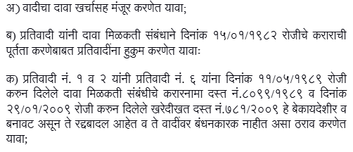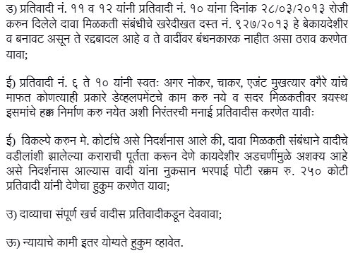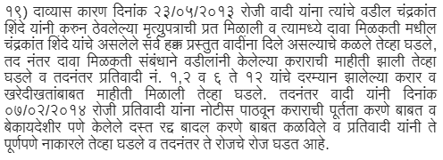 2. Land bearing Survey No. 69/5B/2, 69/8/1, 70/1 to 17A at Village-Kothrud admeasuring 1,37,790 sq.mtrs was sold by one Raju Maruti Shinde to Defendants Nos.1 and 2 (Vidya Devkule and Shakun Apte) by registered sale deed dated 19 July 1964. Land admeasuring 5,000 sq.mts was acquired by the National Highway Authority leaving net land of 1,32,790 sq.mtrs. On 4 January 1975, Defendants Nos.1 and 2 entered into Agreement for Sale with Pushpadant CHSL in respect of land admeasuring 8,362 sq.mtrs. The Agreement however remained in abeyance on account o