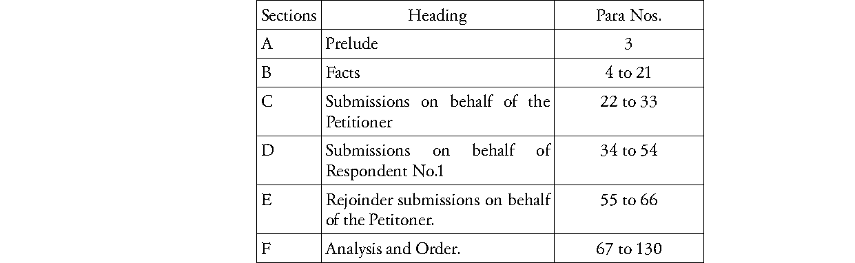 1. This judgment is divided into the following sections to facilitate analysis:-