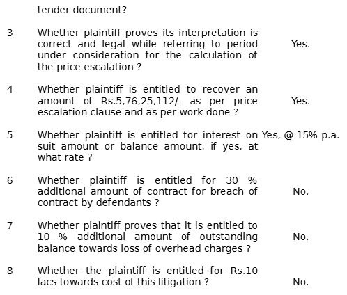 The main legal point established in this judgment is that the award of escalation charges and interest in a commercial contract dispute should be based on proper pleading, proof, and consideration of....