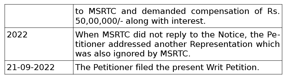 3. Before setting out the rival contentions and consideration of the same, it is relevant to note certain factual aspects. Chart of date and events has been handed over by the learned Counsel appearing for the Petitioner, which is set out herein below :-