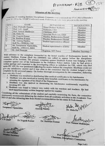 K. Vinod Chandran, CJ. – Whether the appellant, a student of the respondent Institute was victimised or whether the Institute’s image has been tarnished by the unsubstantiated allegations raised by the student before the various authorities, is the underlying issue in the appeal which arise from a writ petition challenging an order of expulsion of the student from the Institute for one academic year. The learned Single Judge noticed the submission of the respondent-Institute that they are agreeable to allow the petitioner to participate in the academic activities from the 5th semester, which would commence in July, 2023; took note of an undertaking filed by the petitioner and set aside the impugned order dated 24.11.2022 with direction to the petitioner to abide by his undertaking and participate in the academic activities from the 5th semester. Liberty was also reserved for the Institute to take appropriate action in the event of breach of undertaking.