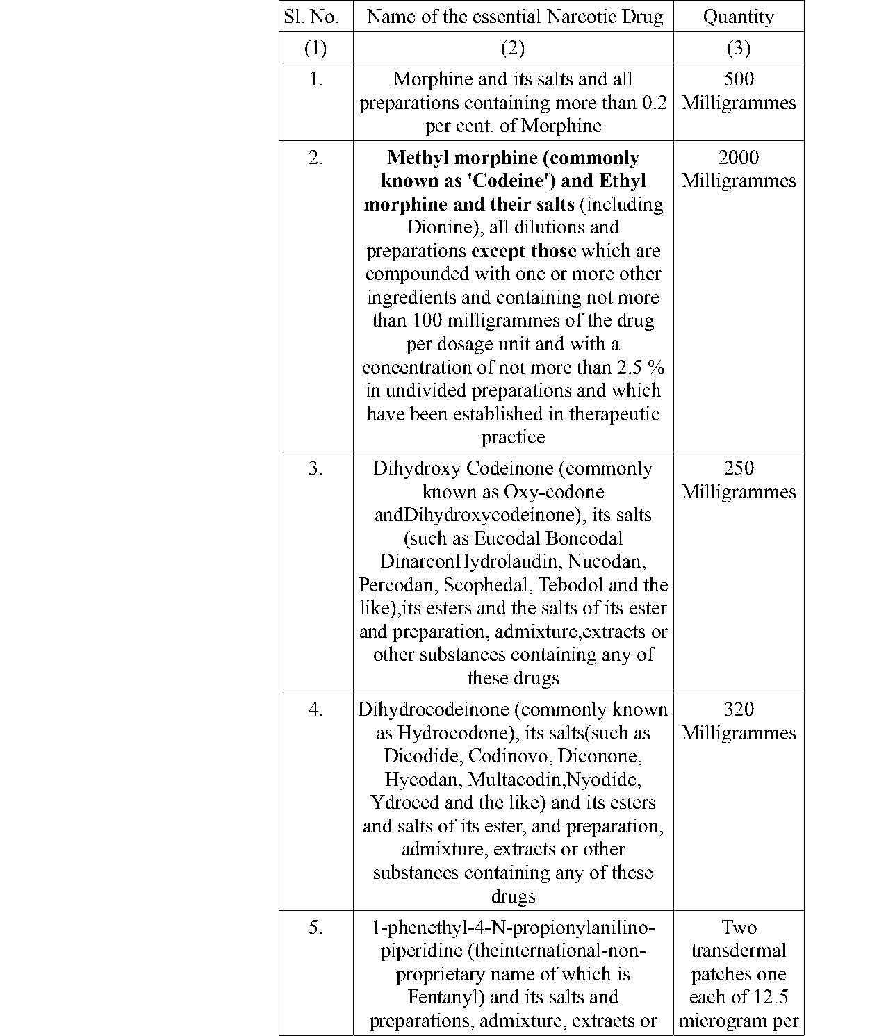 The possession of cough syrup containing Codeine Phosphate falls within the purview of the NDPS Act and is covered as an essential narcotic drug under Section 9(1)(a)(va) of the NDPS Act. The entire ....