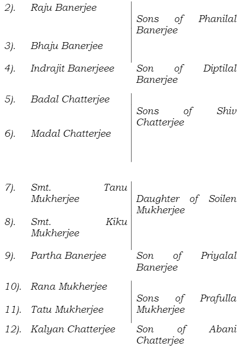 a. The plaintiff, Indrajit Banerjee, son of late Dipti Lal Banerjee @ Dipak Banerjee is one of the grandsons of the testatrix. The testatrix died on 23rd January, 1993, leaving behind the following legal heirs: