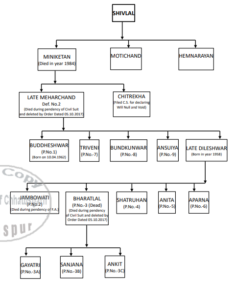 3. Civil Suit No.325A/2012 filed by the plaintiffs (Budheshwar Nayak & Ors.)/respondents herein was allowed and against which FA No.660 of 2018 has been filed by the appellant/defendant No.1 whereas civil suit No.74A/2018 filed by the plaintiff (Tularam Patel)/appellant herein was dismissed and against the same FA No.6 of 2019 was filed by the appellant/plaintiff.