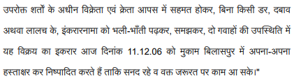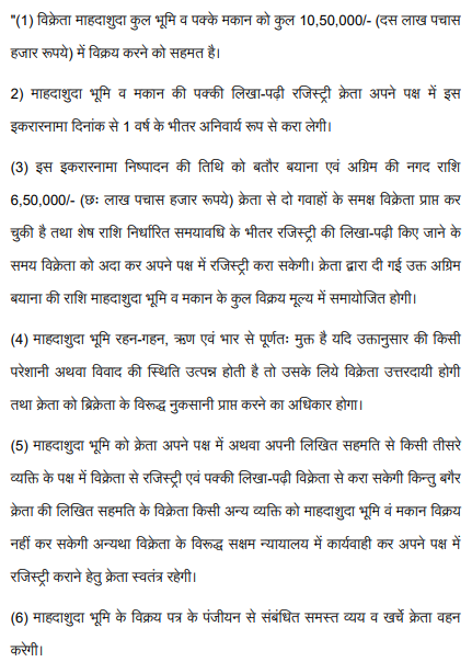 02. Case of the plaintiff, in brief, is that Nazul Sheet No.28, Plot No.71/6, area 436 sqft and adjacent Nazul Sheet No.28, Plot No.113/2, area 1519 sqft, on which a pacca house is constructed (hereinafter referred to as "suit property") is the self-acquired property of father of defendant namely Late M.A. Khan @ Abdul Haji Khan which was given to the defendant by her father through Will dated 5.3.2002 and based on that Will, the defendant got the suit property mutated in her name and acquired the ownership thereof. Since the plaintiff and the defendant were living in the same locality and they were duly acquainted with each other, the defendant being in need of money agreed to sell the suit property for Rs.10.50 lacs to the plaintiff. Thereafter