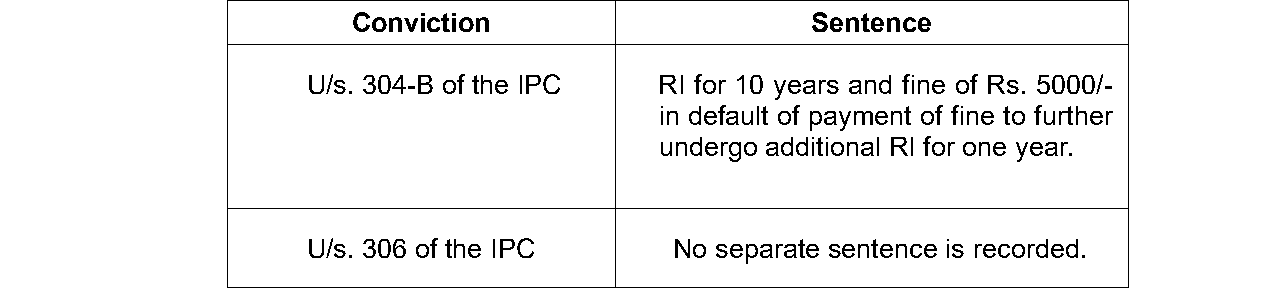 Point of Law : For offence Under Section 304-B Indian Penal Code, punishment is imprisonment for a term which shall not be less than seven years but which may extend to imprisonment for life.