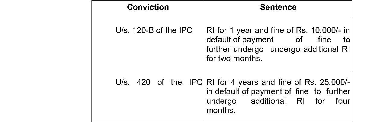 2. The criminal appeals have been preferred by the appellants/accused under Section 374(2) of the Code of Criminal Procedure, 1973 against the judgment of conviction and order of sentence dated 22.02.2018 passed by First Additional Sessions Judge/Special Judge (under Prevention of Corruption Act), Korba (CG) in Special Criminal (P.C. Act) No. 06 /2007, respectively, whereby the appellants have been convicted and sentenced in the following manner:-