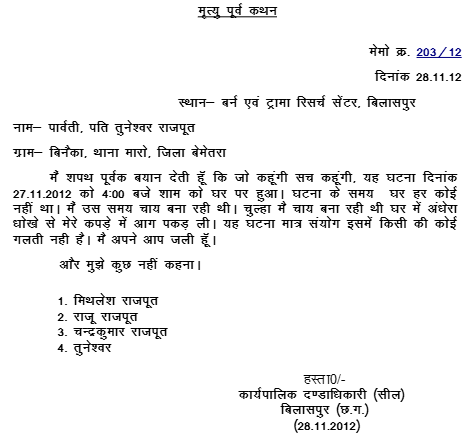 2. ACQA No.141/2014:- This acquittal appeal preferred by the Appellant/complainant arises out of the same judgment dated 29.03.2014 passed by the Additional Sessions Judge, Bemetara, District Bemetara, C.G. in Sessions Trial No.21/2013, whereby the learned trial Court acquitted the accused persons/respondents No.2 & 3 herein of the charge under Section 304-B read with 34 of IPC in alternative Section 302 read with 34 of IPC.
