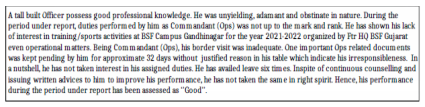 2. As a brief background, it is the case of the petitioner that the petitioner joined the Border Security Force (in short ‘BSF’) as Assistant Commandant (Direct Entry) on 02.07.1993. He was promoted to the rank of Commandant on 07.10.2016, and is due for promotion to the rank of Deputy Inspector General (in short ‘DIG’). He has an unblemished record in his entire 29 years of service.