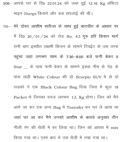 2. The allegations against the petitioner are that 12.16 Kgs of Methamphetamine was recovered from the house of one Mr. Gaurav Singh Chouhan on 22.01.2024 in a blue/firozi bag which has been transported by the petitioner to Delhi on 20.01.2024 and delivered to Mr. Gaurav Singh Chouhan by one Mr. Gurcharan Singh @ Sweety and Gurpreet Singh @ Jojo at Ranibagh, New Delhi. It is further alleged that the aforesaid bag was delivered at the instructions of the petitioner.