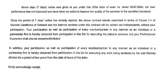 3. The petitioner, being the successful bidder, was awarded a Contract by the Railways for performance of services/work for “Mechanized cleaning of coaches of primary trains along with provisions of On Board Housekeeping Services (‘OBHS’) in trains including toiletries in AC coaches and depot complex cleaning at Coaching Depot, Amritsar (ASR) for period of 3 years (1095) days” on “Outcome Basis” and the work was started by the petitioner from 1st July, 2022.