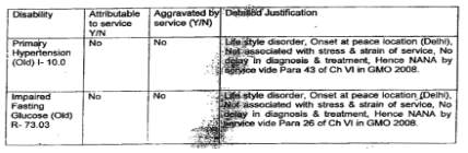 2. The facts giving rise to the present petition are that the respondent was retired from the service on 31.03.2023 under clause ‘on attaining superannuation with permanent low medical category A4G4 (P)’. The Release Medical Board [‘RMB’] held on 24.11.2022 assessed the disabilities i.e., Primary Hypertension (Old) 10.0 at 30% for life and Impaired Fasting Glucose (Old) R-73.03 at 15% for life, compositely assessed at 40.5% for life. The RMB opined that since the onset of the disease was at the time when the respondent was serving at the peace station i.e., AFCAO, New Delhi and was due to the lifestyle disorder, the aforesaid disabilities