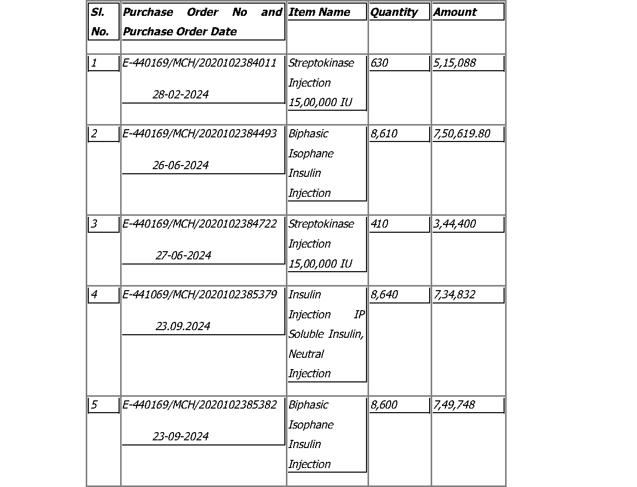 4. A tender bearing No. 345545/2838 dated 01.08.2023 and a Corrigendum No. 1 bearing No. E-345545/2266 dated 18.08.2023 was issued by the Managing Director of the Assam Medical Services Corporation Limited i.e. the respondent No. 3 for supply of essential drugs. The petitioner participated in the said tender process. In pursuance to that, a Letter of Intent was issued bea