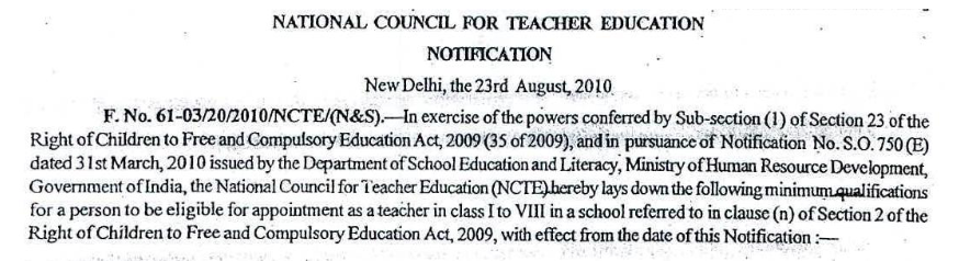 (1) A person, to be eligible for appointment as a teacher, must possess such minimum qualifications, as laid down by an academic authority, authorised by Central Government.(2) Government cannot amen....